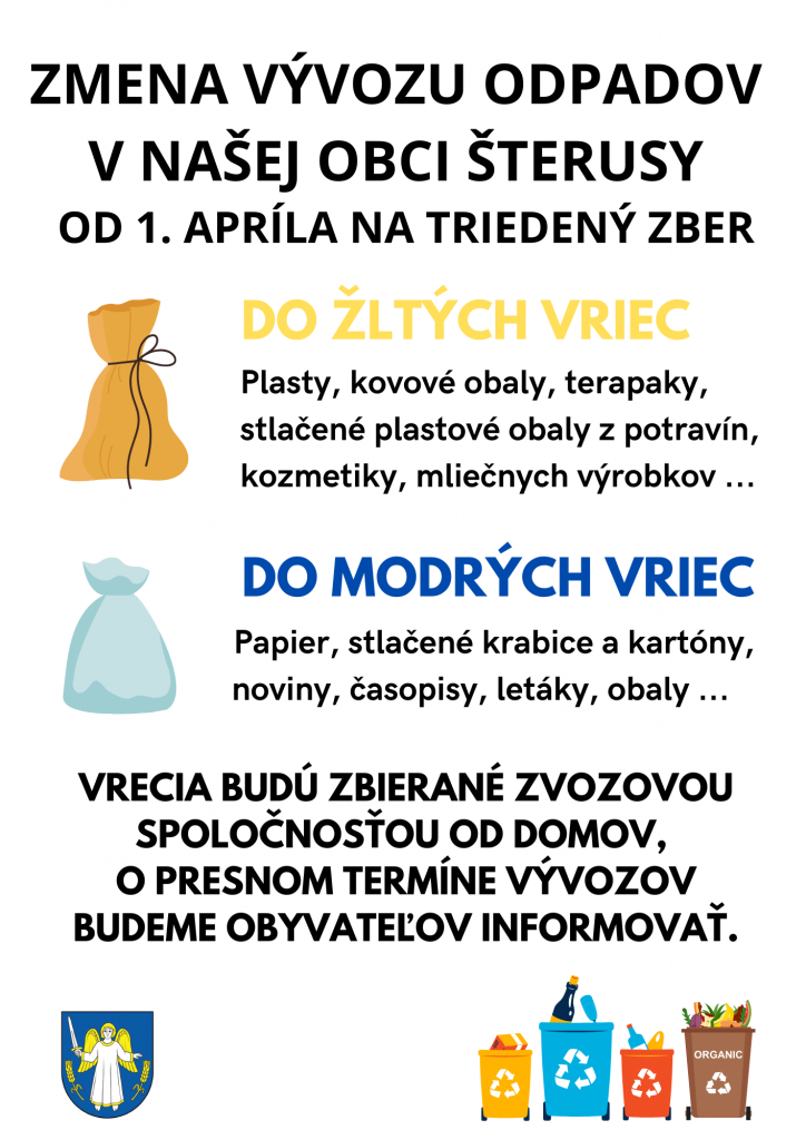 Zmena vývozu odpadov v našej obci od 1.4.2023 na triedený zber